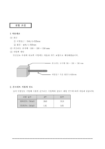 상기 인발강도 시험에 사용한 콘크리트 시험체의 강도는 재령 일수에 따라 다음과 같습니다.
