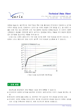 [그림 2]는 시멘트 페이스트의 수분 양생 시간에 따른 기체 투과성을 평가한 것입니다. 그