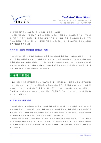 수축에 따른 균열 발생을 억제합니다. 내첨 양생제의 사용은 특별한 기술이나 사용에 따른 세