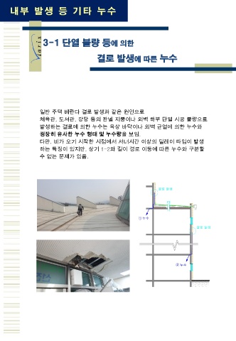 발생하는 결로에 의한 누수는 옥상 바닥이나 외벽 균열에 의한 누수와