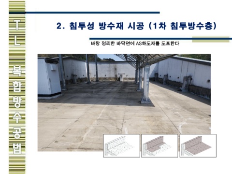 2. 침투성 방 수 재 시 공 (1차 침투방수층) 바탕 정리한 바닥면에 AS하도재를 도포한다