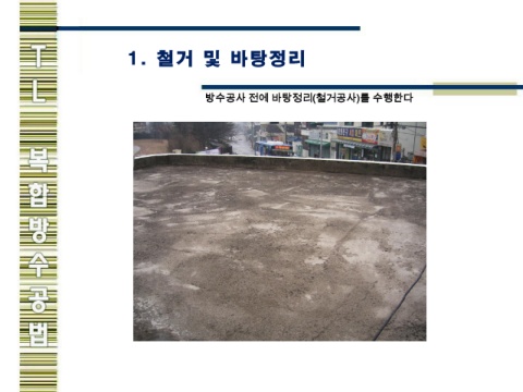 1. 철 거 및 바탕정리 방수공사 전에 바탕정리(철거공사)를 수행한다