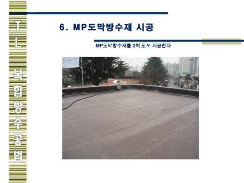 6. MP도막방수재 시 공 MP도막방수재를 2회 도포 시공한다