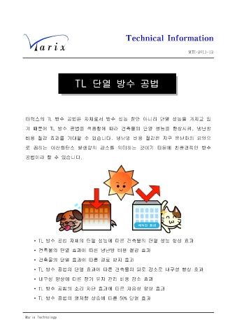 마릭스의 TL 방수 공법은 자체로서 방수 성능 뿐만 아니라 단열 성능을 가지고 있