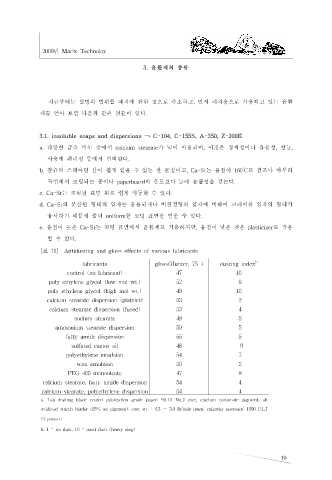e. 융점이 높은 Ca-St는 코팅 표면에서 윤활제로 작용하지만, 융점이 낮은 것은 plasticizer로 작용