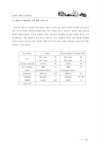 위하여 바인더(latex)나 전분의 첨가량이 많다. 이에 따른 윤활제의 첨가량도 일본의 경우가 우리