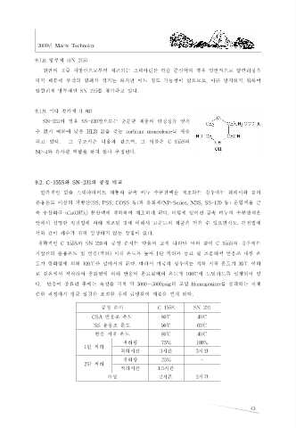 개략적인 C-155S와 SN-231의 공정 순서는 다음의 표에 나타난 바와 같이 C-155S의 경우에는