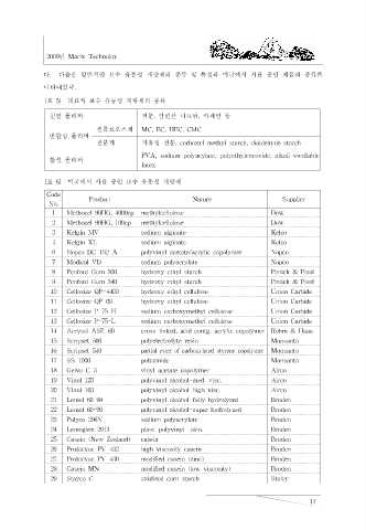 천연 폴리머 전분, 알킨산 나트륨, 카제인 등