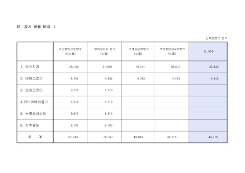 12. 공사 비용 비교 Ⅰ